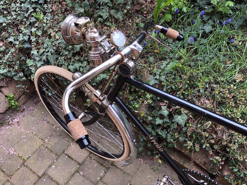 Über Geschmack lässt sich ja bekanntlich vortrefflich streiten - und ich muss sagen, dass ich Flohs Meinung teile. Ich kanns schwer beschreiben, aber auf mich macht das Rad einen "nicht stimmigen" Eindruck - denke es liegt wohl an den recht breiten, eher modernen Schutzblechen (wobei Chrom oder Nickel eher Nebensache ist, die Form passt nicht) und dem Replika Lenker, mit Vorbau. Zudem: zwei Glocken sind m.E. eine zu viel