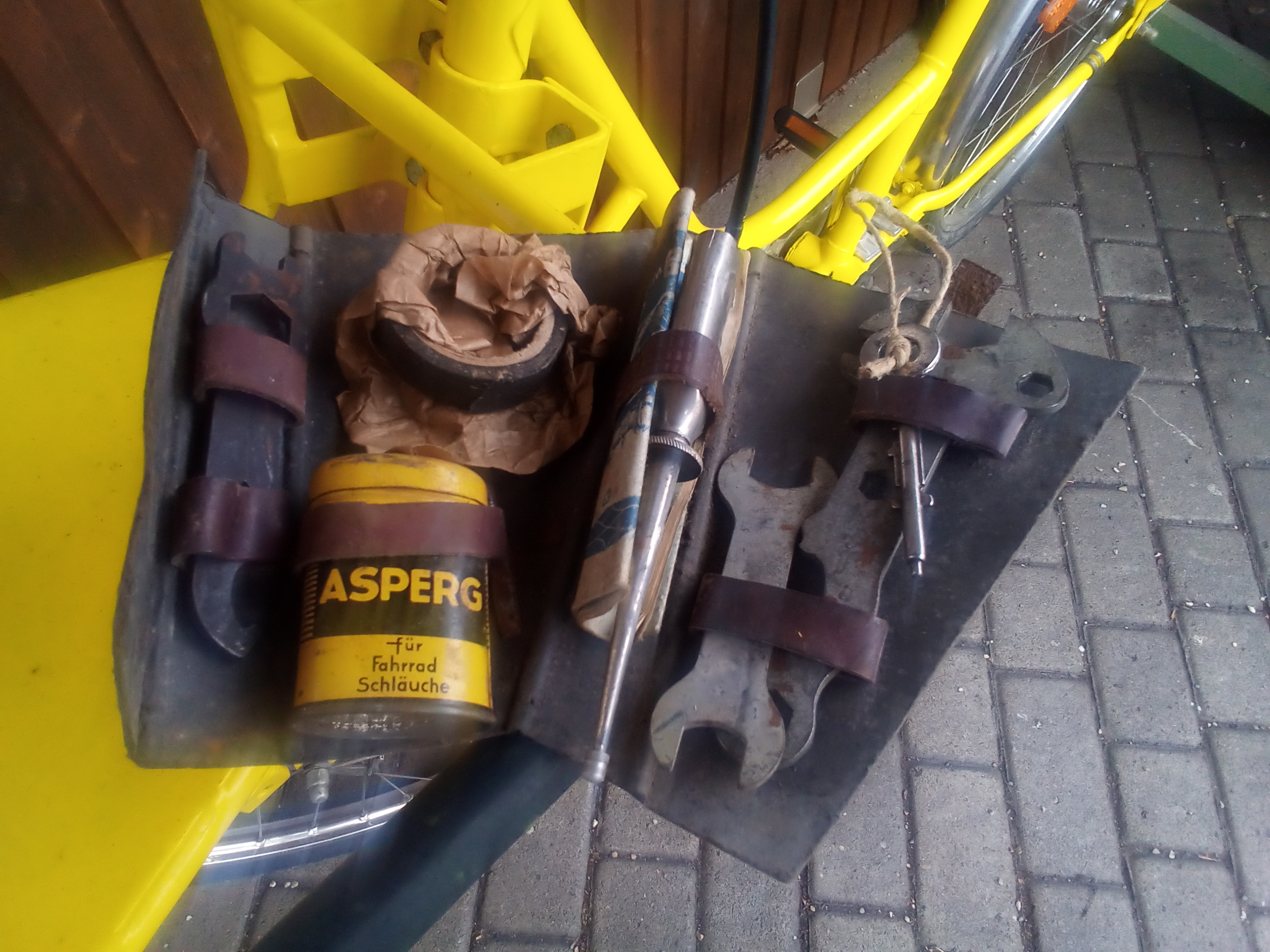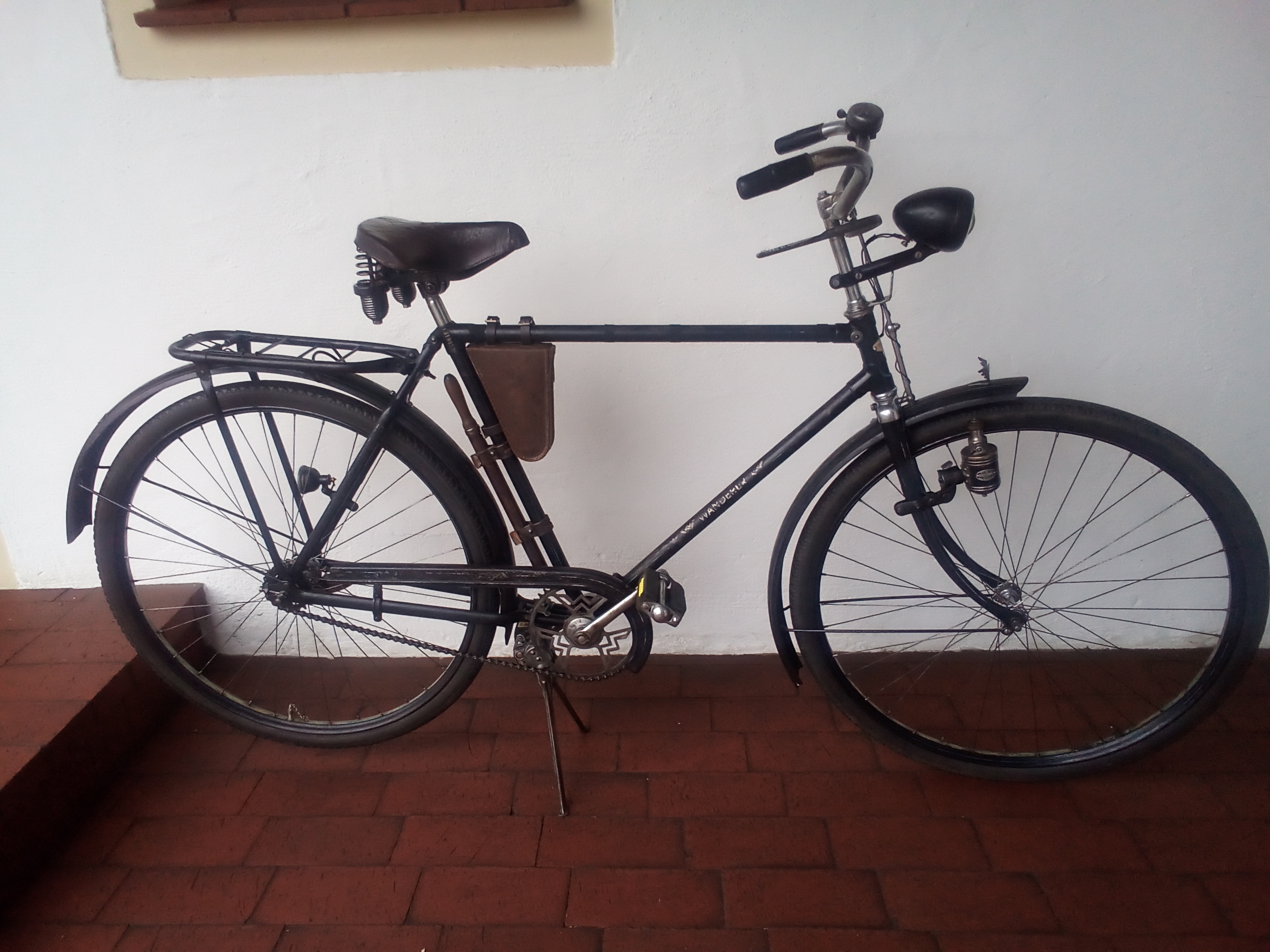 Ich habe von einer alten Dame im Ort das Wanderer Herrenrad Modell Nr 1 ihres Vaters geschenkt bekommen. Es ist BJ 39 und außer viel Flugrost in einem total kompletten Zustand. Alles Original bis auf die neuen Pedale. Wurden durch welche aus der Zeit ersetzt. (Originale sind sehr teuer). Ein schönes Rad , Sattel, Klingel, Beleuchtung ( Bosch mit or. Bauanleitung ), fahrbare Altbereifung Mod. Odenwald ( noch nie gehört und gesehen ), und komplett bestückter extra Einsatz in der Werkzeugtasche alles original. Das Rad wurde nur entrostet und gewachst. Meine Frage , ist dieser Einsatz von Wanderer , oder Zubehör?. Ich bekomme noch die alte Kaufrechnung.