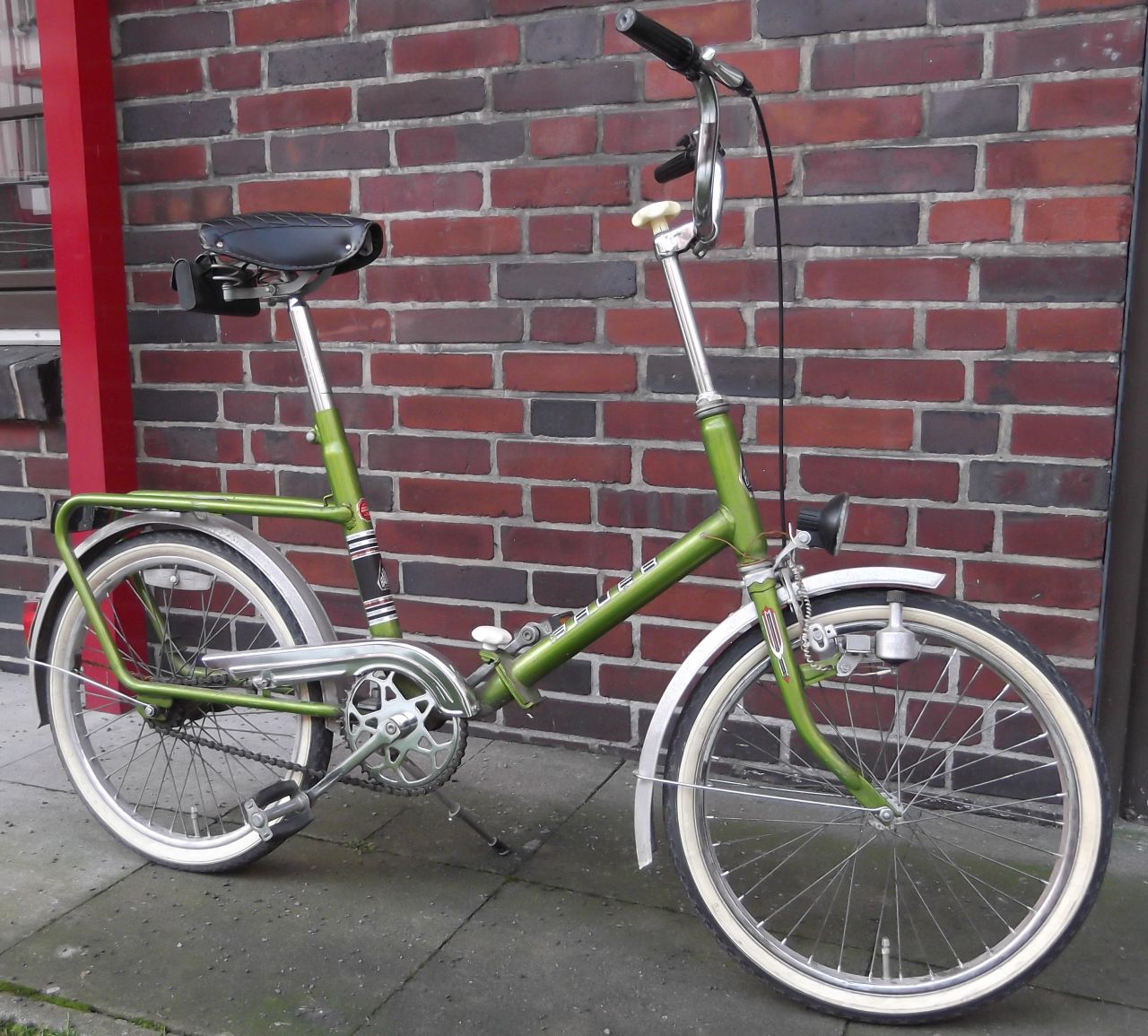 Hier das Standart Modell mit 20 Zoll Bereifung und das 26 Zoll Rad, in zwei Teile zerlegbar. Beide Varianten sind in einer Preisliste aus dem Jahr 1967 als „Klapprad“ bezeichnet.