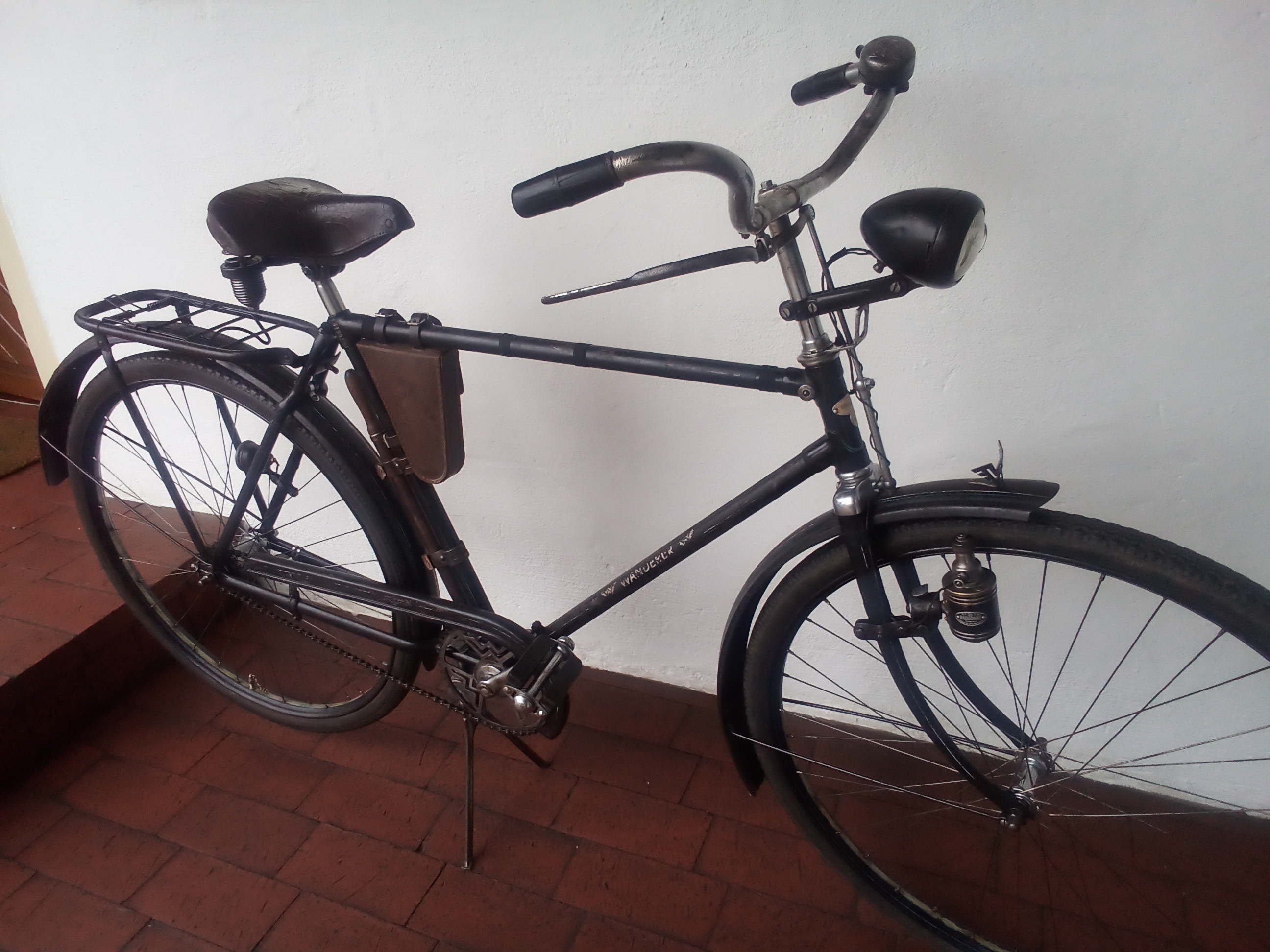 Ich habe von einer alten Dame im Ort das Wanderer Herrenrad Modell Nr 1 ihres Vaters geschenkt bekommen. Es ist BJ 39 und außer viel Flugrost in einem total kompletten Zustand. Alles Original bis auf die neuen Pedale. Wurden durch welche aus der Zeit ersetzt. (Originale sind sehr teuer). Ein schönes Rad , Sattel, Klingel, Beleuchtung ( Bosch mit or. Bauanleitung ), fahrbare Altbereifung Mod. Odenwald ( noch nie gehört und gesehen ), und komplett bestückter extra Einsatz in der Werkzeugtasche alles original. Das Rad wurde nur entrostet und gewachst. Meine Frage , ist dieser Einsatz von Wanderer , oder Zubehör?. Ich bekomme noch die alte Kaufrechnung.